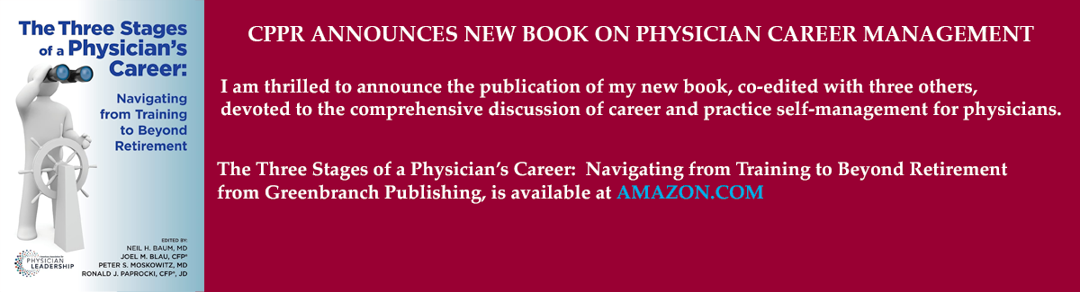 Dr. Moskowitz is co-author of the new book, “The Three Stages of a Physician’s Career: Navigating from Training to Beyond Retirement,” published in 2017 by Greenbranch Publishing. This valuable career management resource targeted to students, trainees, and practicing physicians, discusses specialty selection, career and transition planning, practice management, asset growth and protection, and staying healthy from medical school through retirement.